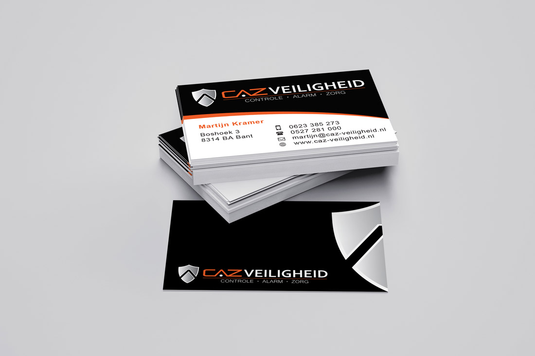 Voor CAZ veiligheid heeft Mediascape een logo met bijbehorende vormentaal ontworpen, welke vervolgens is uitgerold naar briefpapier, envelop en visitekaart. Het opvallende lijnenspel is ingezet als voornaamste stijl element.